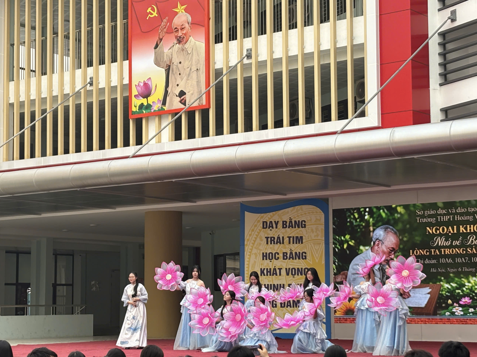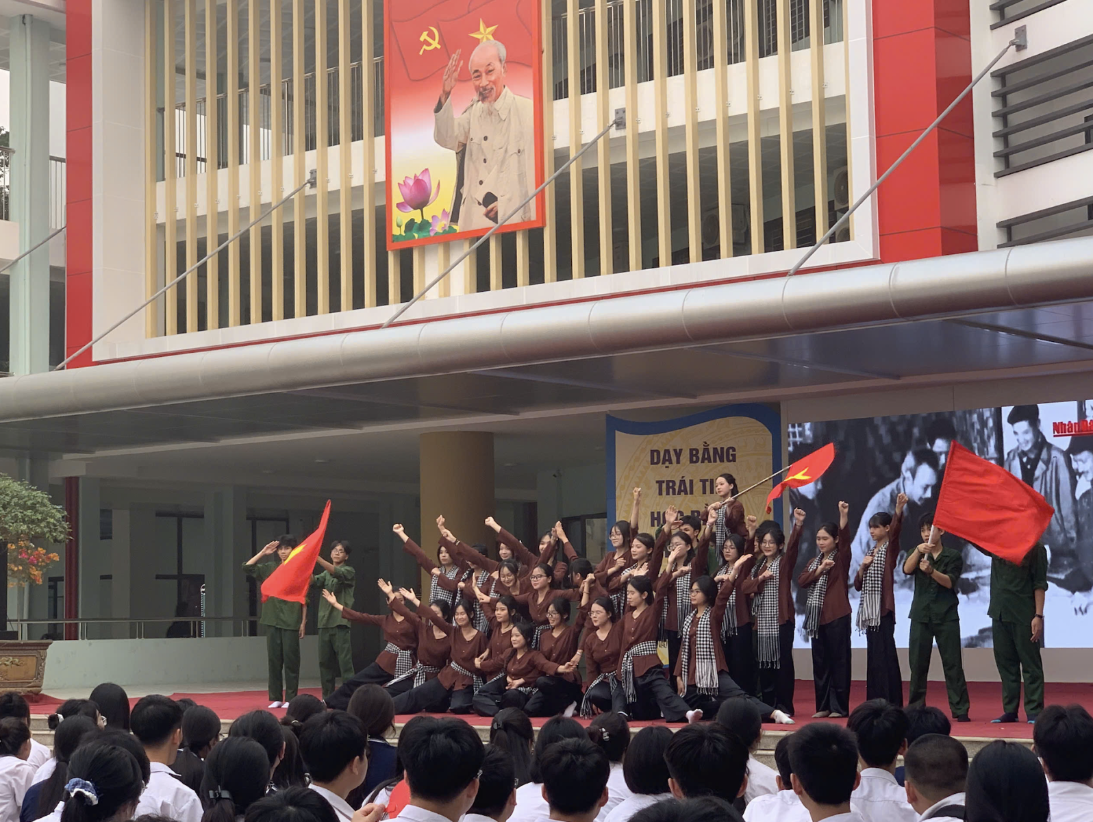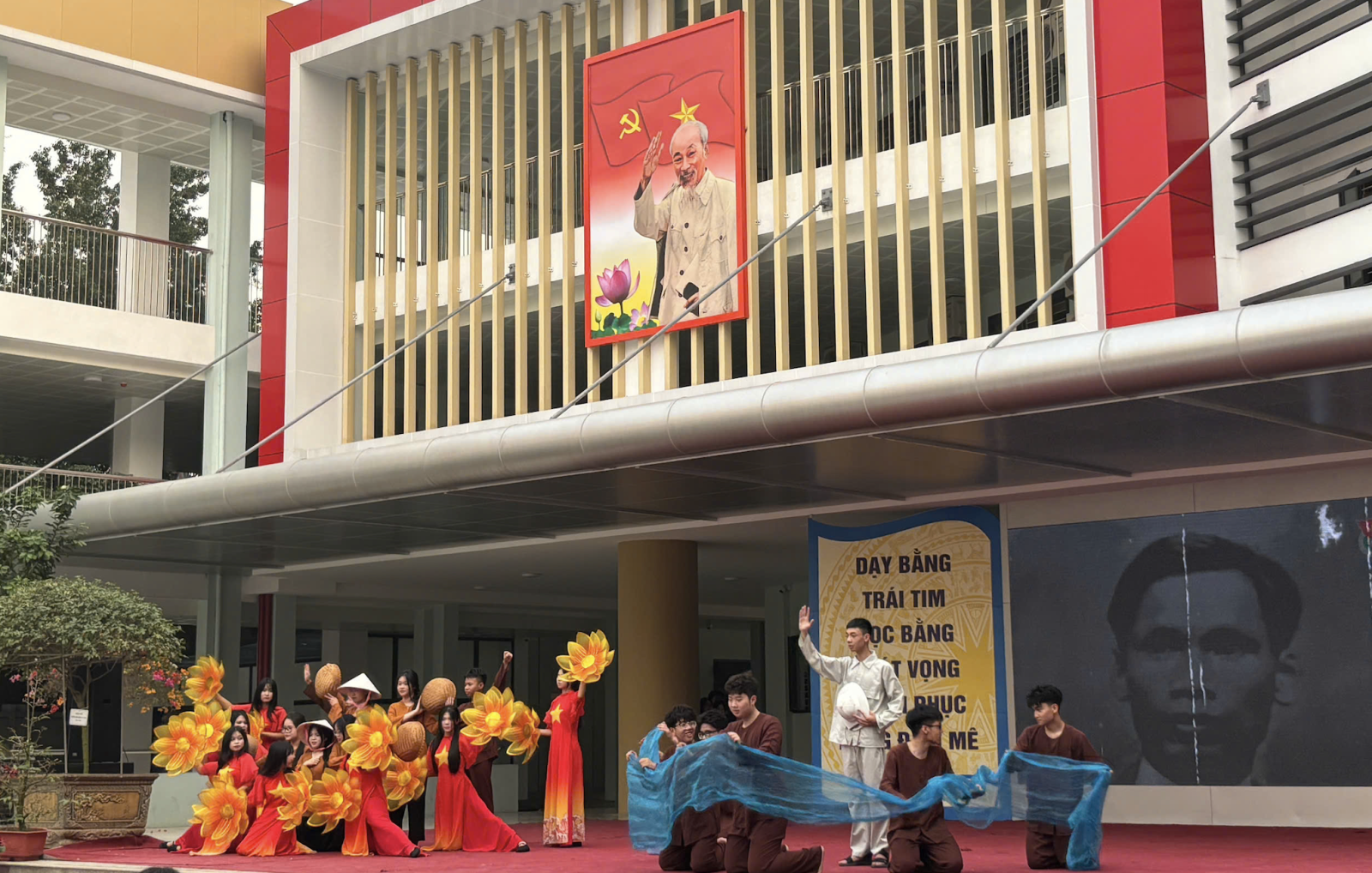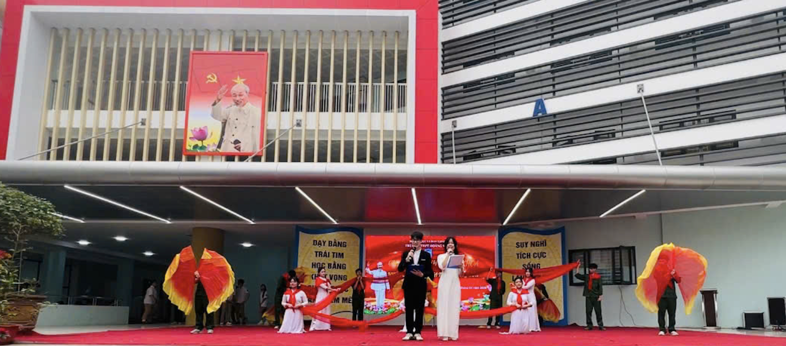 Đặc biệt, hoạt động còn lồng ghép các tiết mục văn nghệ tạo nên không gian vừa trang trọng vừa gần gũi. Những lời ca, tiếng hát như lời tri ân sâu sắc gửi tới Người – vị cha già kính yêu của dân tộc. Thông qua chương trình, nhà trường mong muốn mỗi học sinh sẽ tự soi chiếu lại bản thân, từ đó xây dựng lối sống lành mạnh, trong sáng, biết yêu thương, sẻ chia và không ngừng nỗ lực vươn lên trong học tập cũng như cuộc sống.