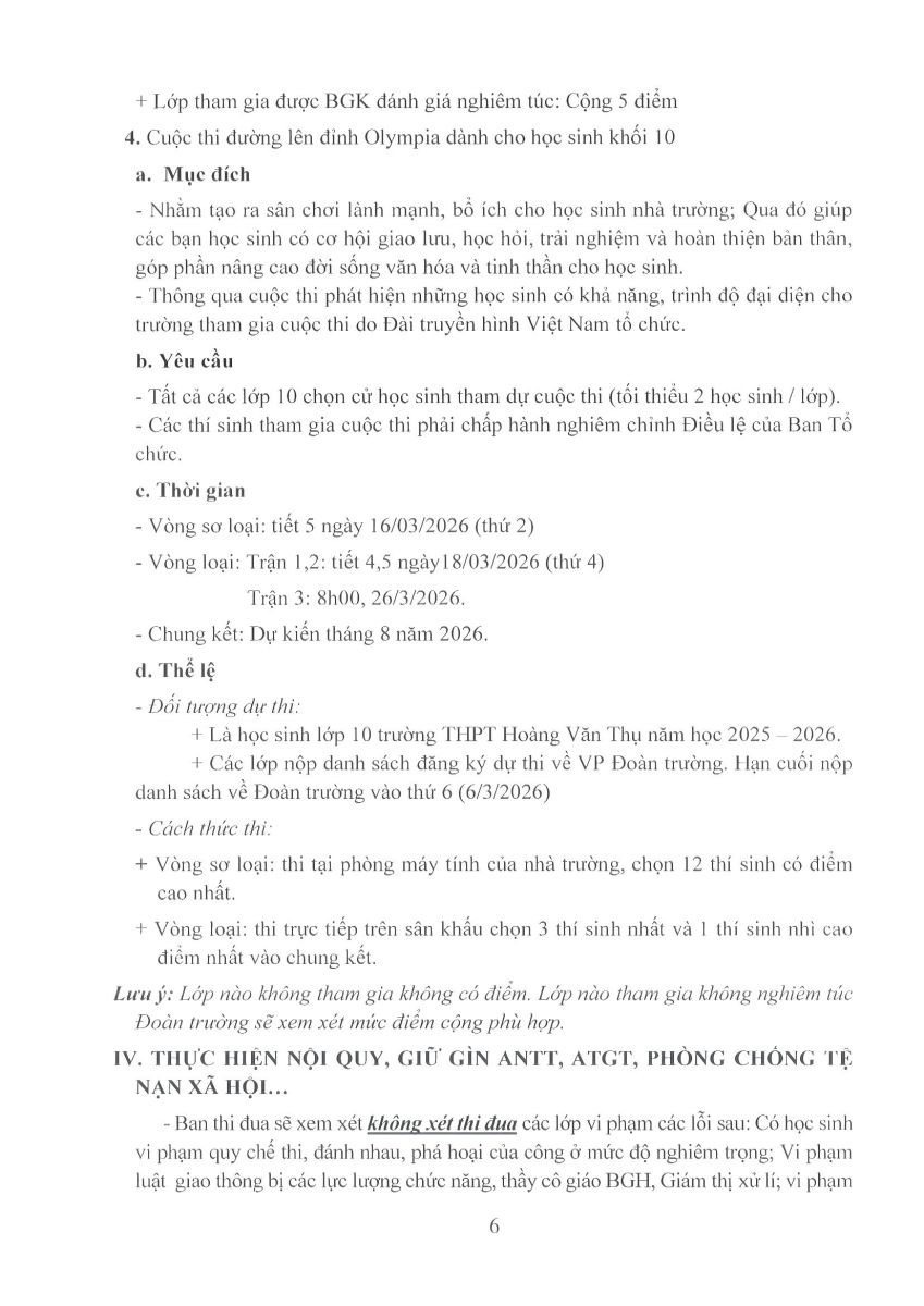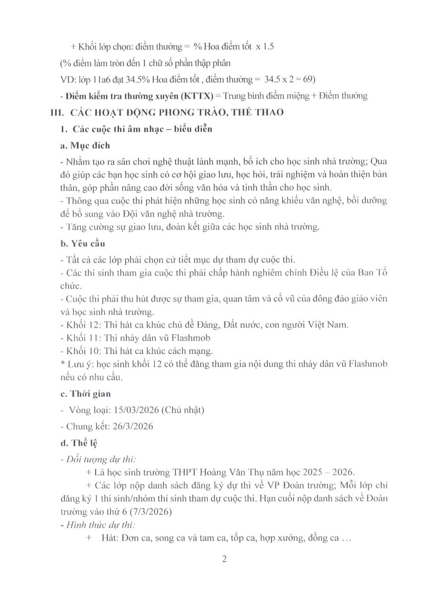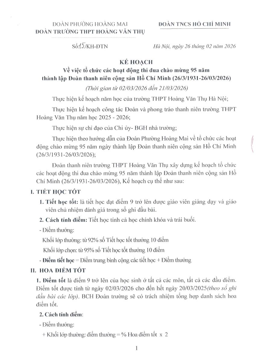 Thực hiện kế hoạch giáo dục năm học 2025-2026, sự chỉ đạo của Chi ủy, Ban giám hiệu trường THPT Hoàng Văn Thụ, BCH đoàn trường THPT Hoàng Văn Thụ đã xây dựng kế hoạch tổ chức các hoạt động chào mừng 95 năm ngày thành lập Đoàn TNCS Hồ Chí Minh.